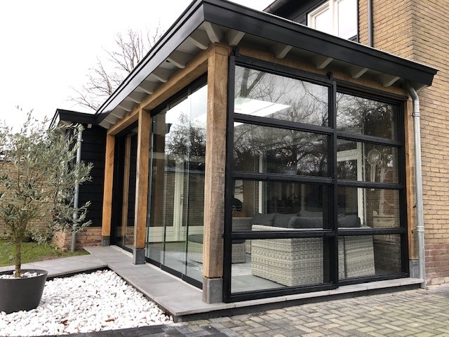 Ook in de winter maanden kunt u genieten van een veranda. Bijvoorbeeld door een glazen schuifwand in de veranda te plaatsen.